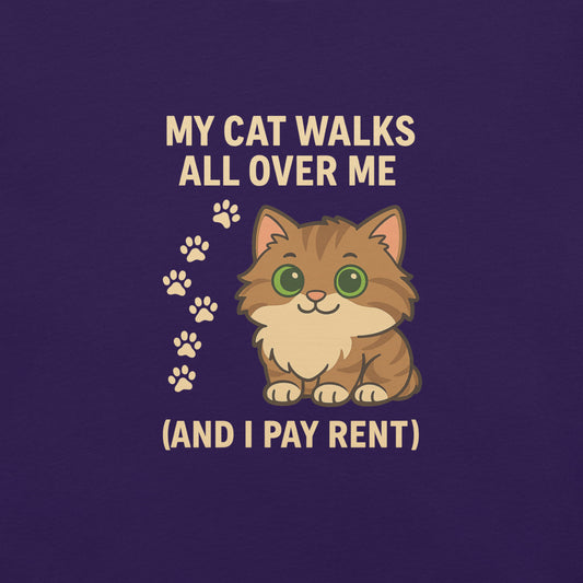 "My Cat Walks All Over Me (And I Pay Rent)" Funny Siberian Cat Shirt – Featuring Bogey the Fluffy Kitty